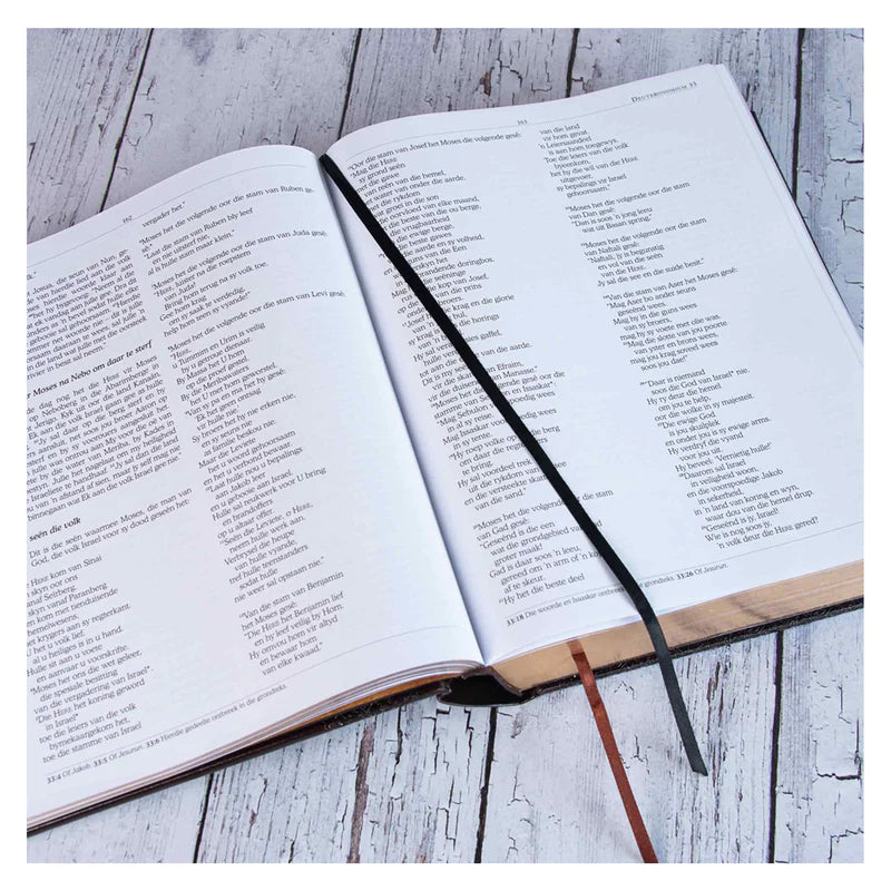 • Poëtiese gedeeltes in poëtiese styl geset