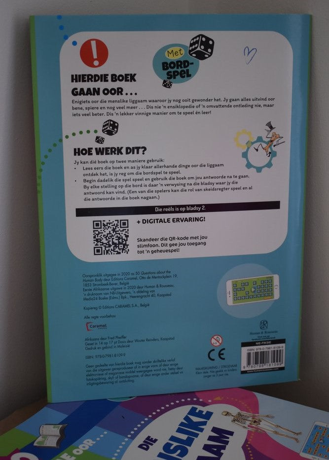 Met bordspeletjie binne-in die boek, plus 'n QR-kode na 'n digitale ervaring.